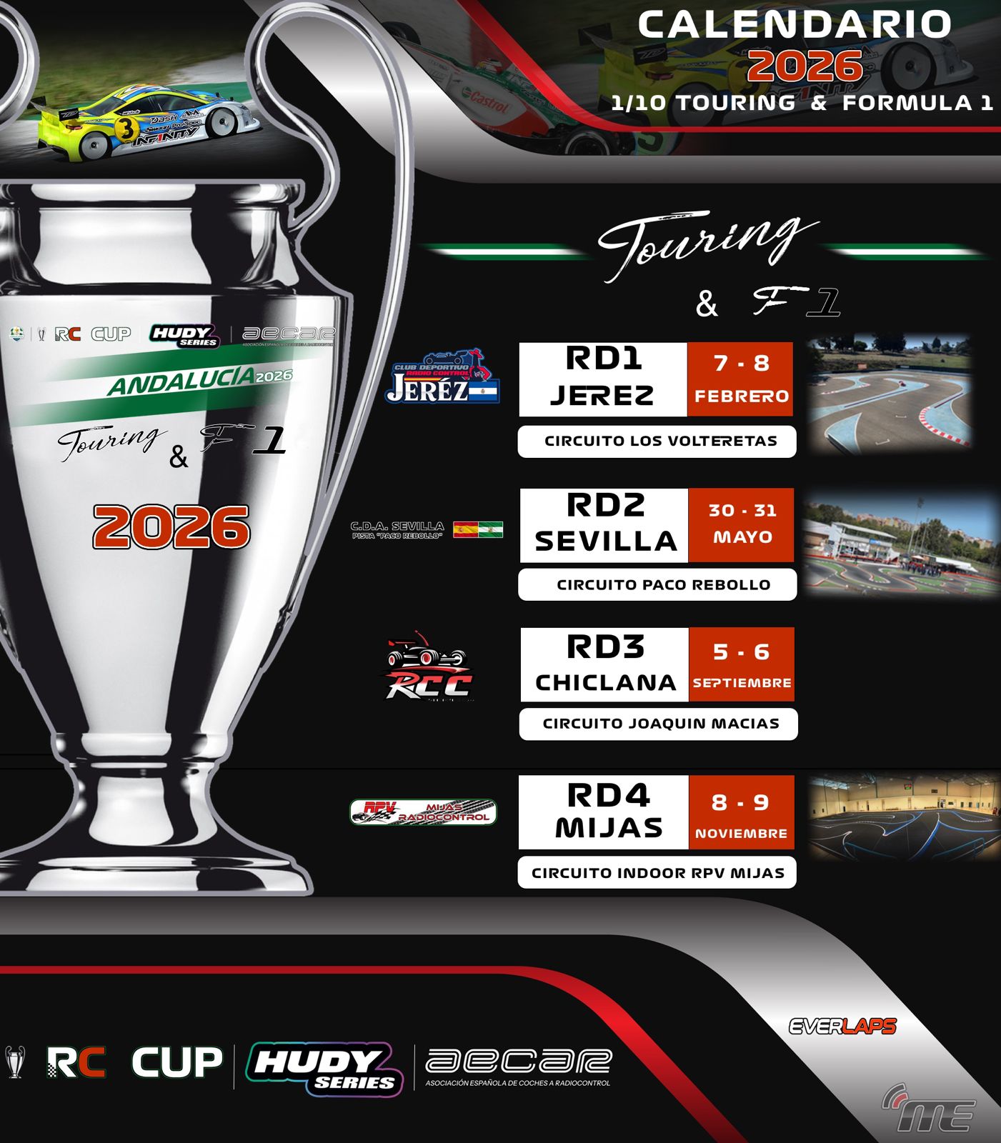 Os recuerdo que tenemos la Copa de campeones a celebrar en Sevilla organizada por el Club Deportivo de Automodelismo Sevilla C.D.A.S el dia 27 de Octubre. En ella se hara entrega de los trofeos de final de Campeonato.