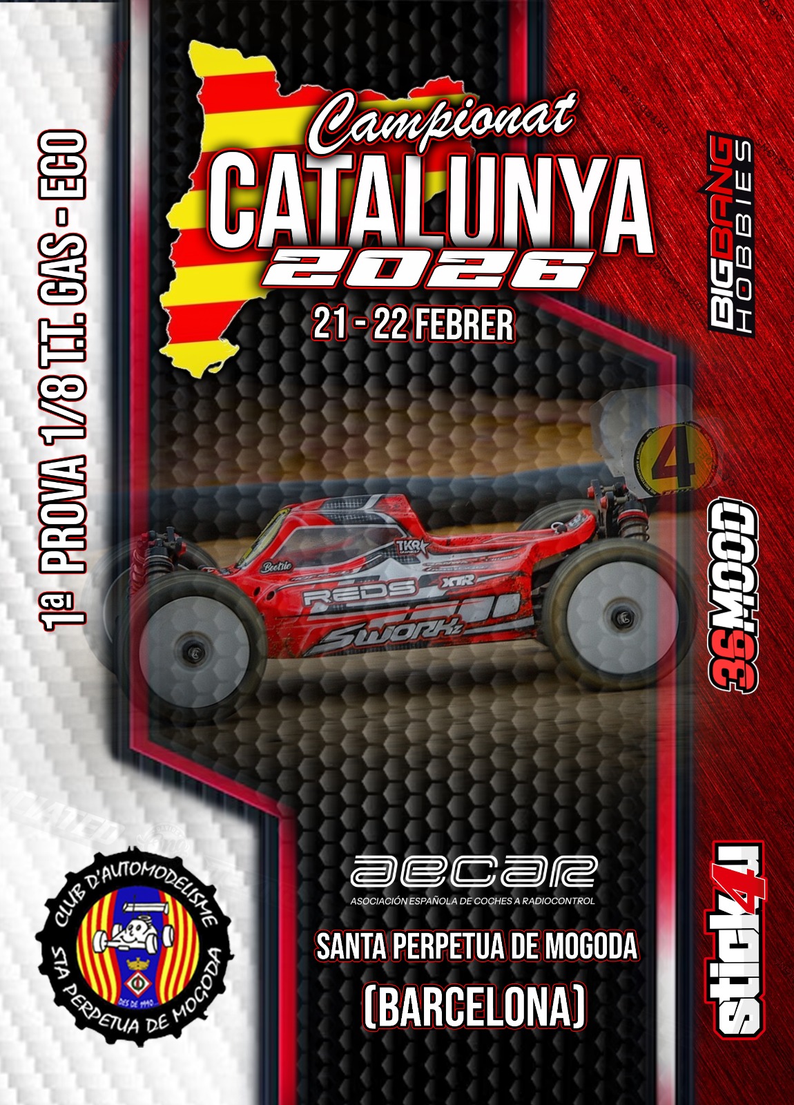 Aquest proper 22 de febrer es durà a terme la 1aProva del Campionat de Catalunya 1/8 TT 2025.