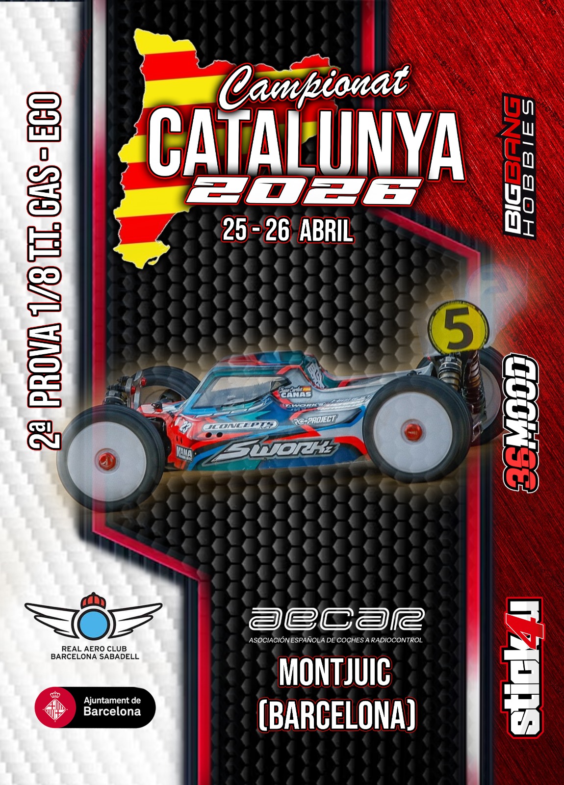 Aquest proper 26 d'Abril es durà a terme la 2aProva del Campionat de Catalunya 1/8 TT 2026.