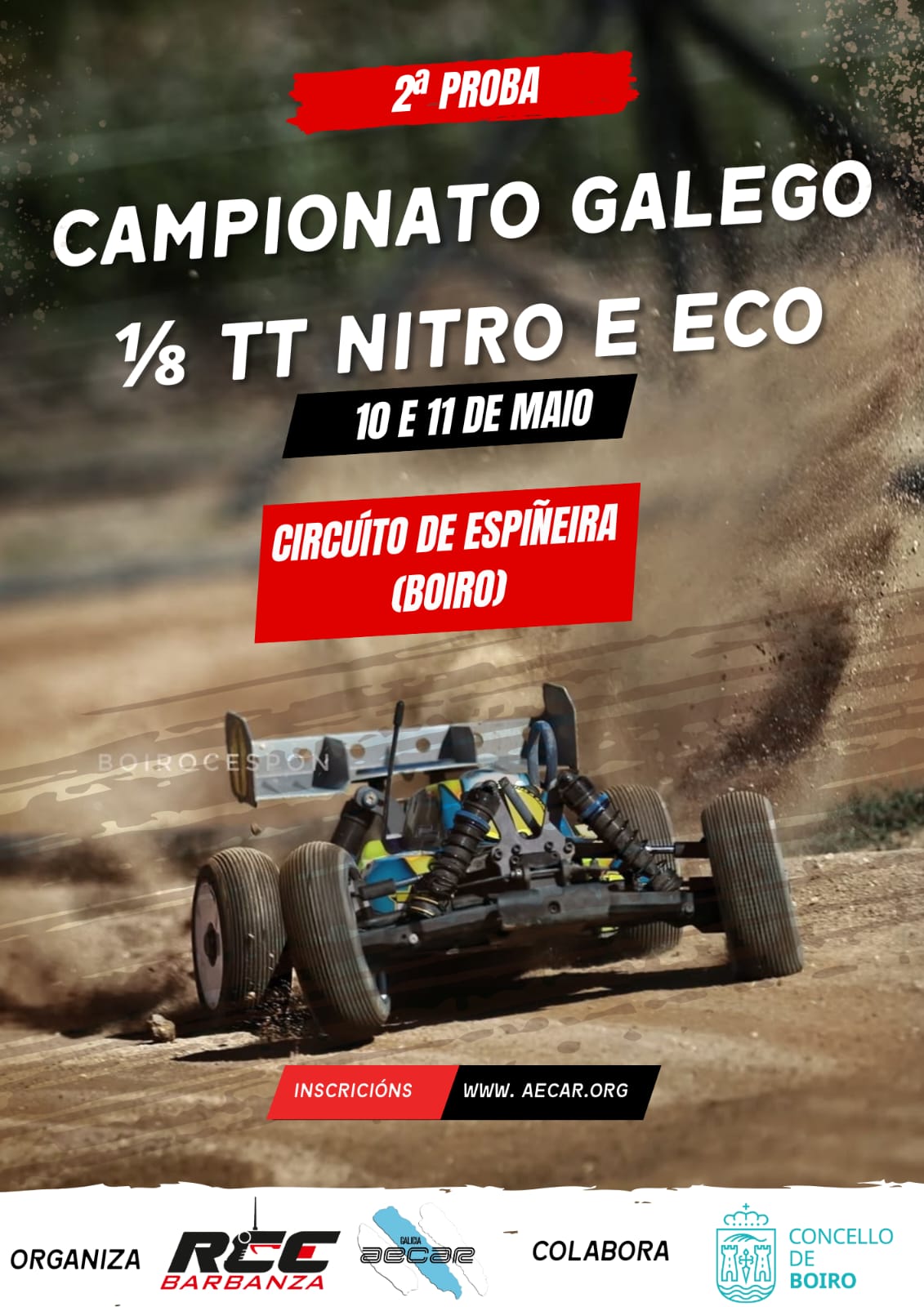 Llega la 2ª prueba del Campeonato Gallego 1/8 TT Nitro 2025 que en esta ocasión se celebrará en el circuito de Espiñeira en Boiro.