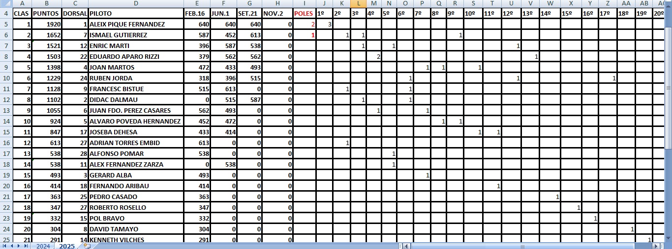 Ver 01/06/2025 - CLASIFICACIÓN PROVISIONAL GT 2025
