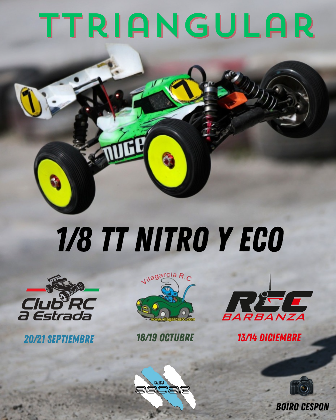 Los días 20 y 21 de Septiembre tendrá lugar en el circuito de A Estrada la primera del triangular 1/8 TT 2025. Os dejamos de las normas para este campeonato que se celebrará a tres pruebas.